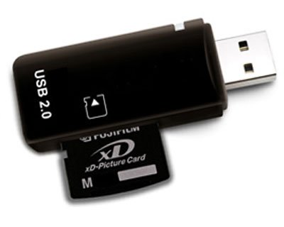 New Page 1 USB 2.0 Fuji Fujifilm xD PictureCard Reader / Writer A MUST have for anybody with a digital camera/camcorder! Perfect companion for Digital cameras,Mp3 players, Palm and PDAs, and more! Read/Write/Copy your Flash Card ANYWHERE! Cool modern design, small pocket size and light-weight. Complies with the Universal Serial Bus specification Rev2.0 Fully compliant with XD Fuji Cards. Plug and Play and Hot-Pluggable Operates without external power, powered by USB bus. Color: BLACK Cards Supported: Fuji xD Cards System Requirements: IBM compatible desktop PC or Mac USB host card or USB Hub device Windows 2000 operating system or greater