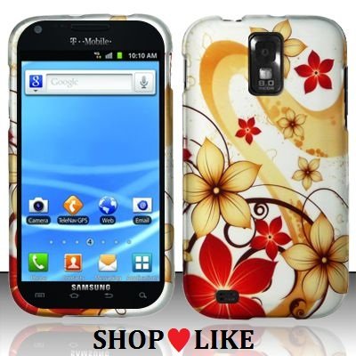 Rubberized gold Red Flowers Snap on Design Case Hard Case Skin Cover Faceplate for Samsung Hercules T989 Galaxy S2 + Screen Protector Film + Free Cellphone Bag Review